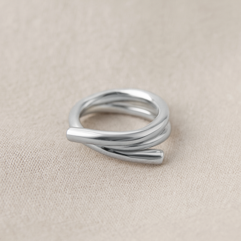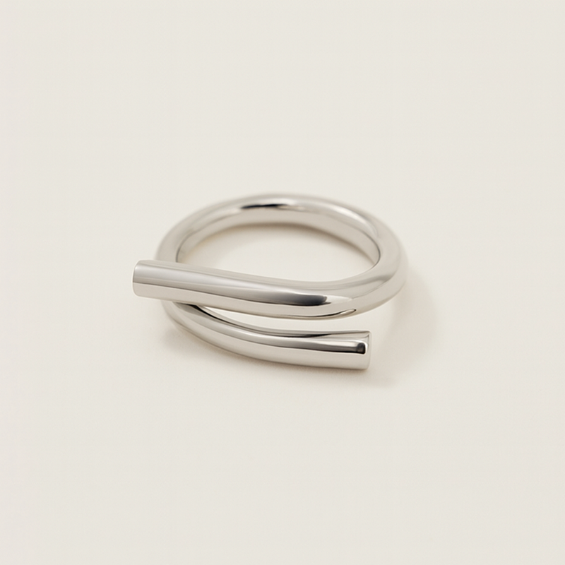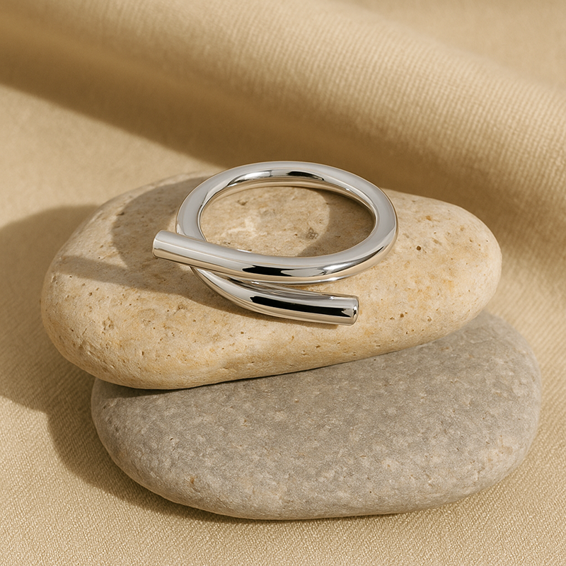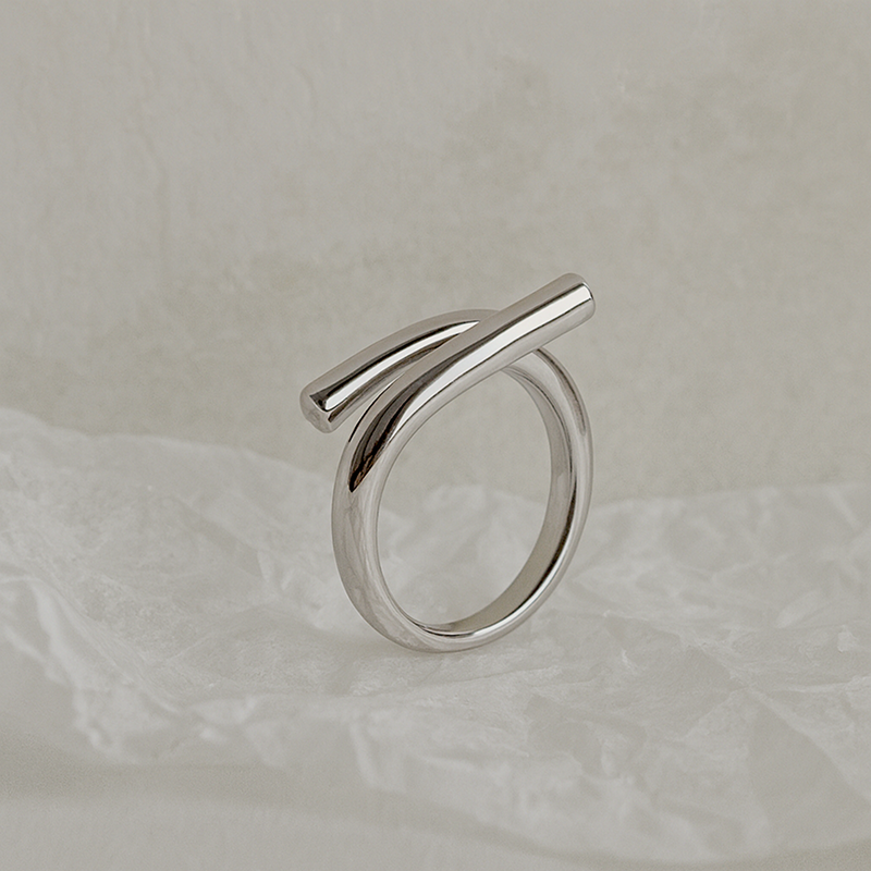 A sculptural sterling silver ring that wraps your finger in sleek balance. “Axis” brings harmony to movement—effortlessly minimal, endlessly powerful.